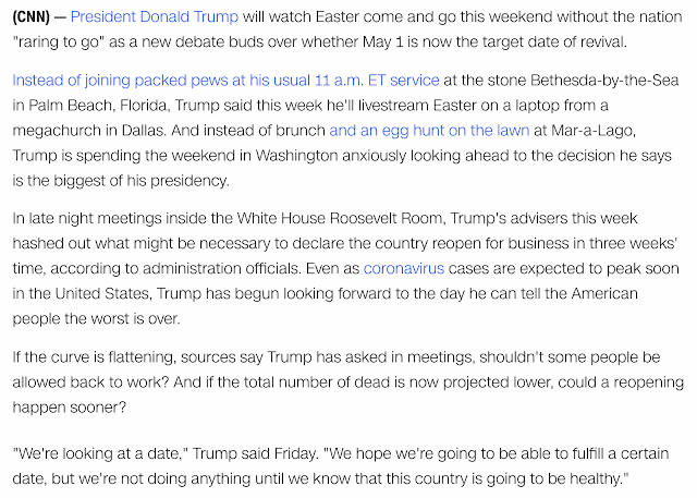 Trump considers resurrecting the economy on Easter Sunday, April 12, 2020 | More sick jokes