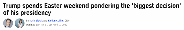 His biggest decision has to do with bringing the economy back to life, and he is mulling this on Easter weekend, when Christians are celebrating the resurrection of Jesus.