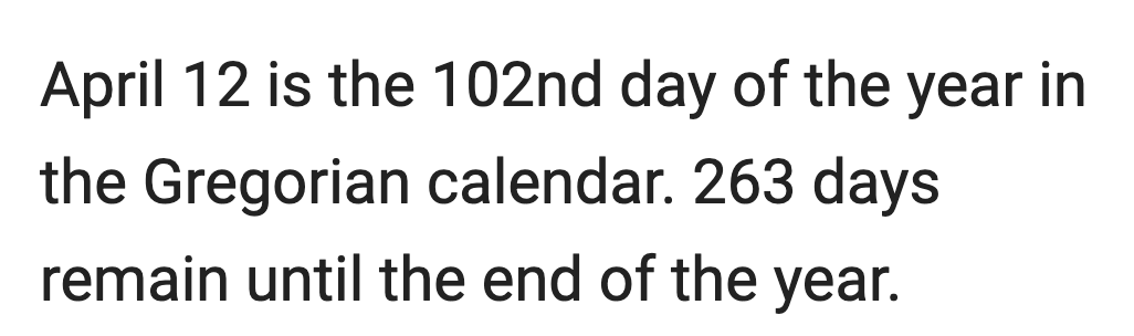 April 12 leaves 263-days left in the year as well, the 56th prime.