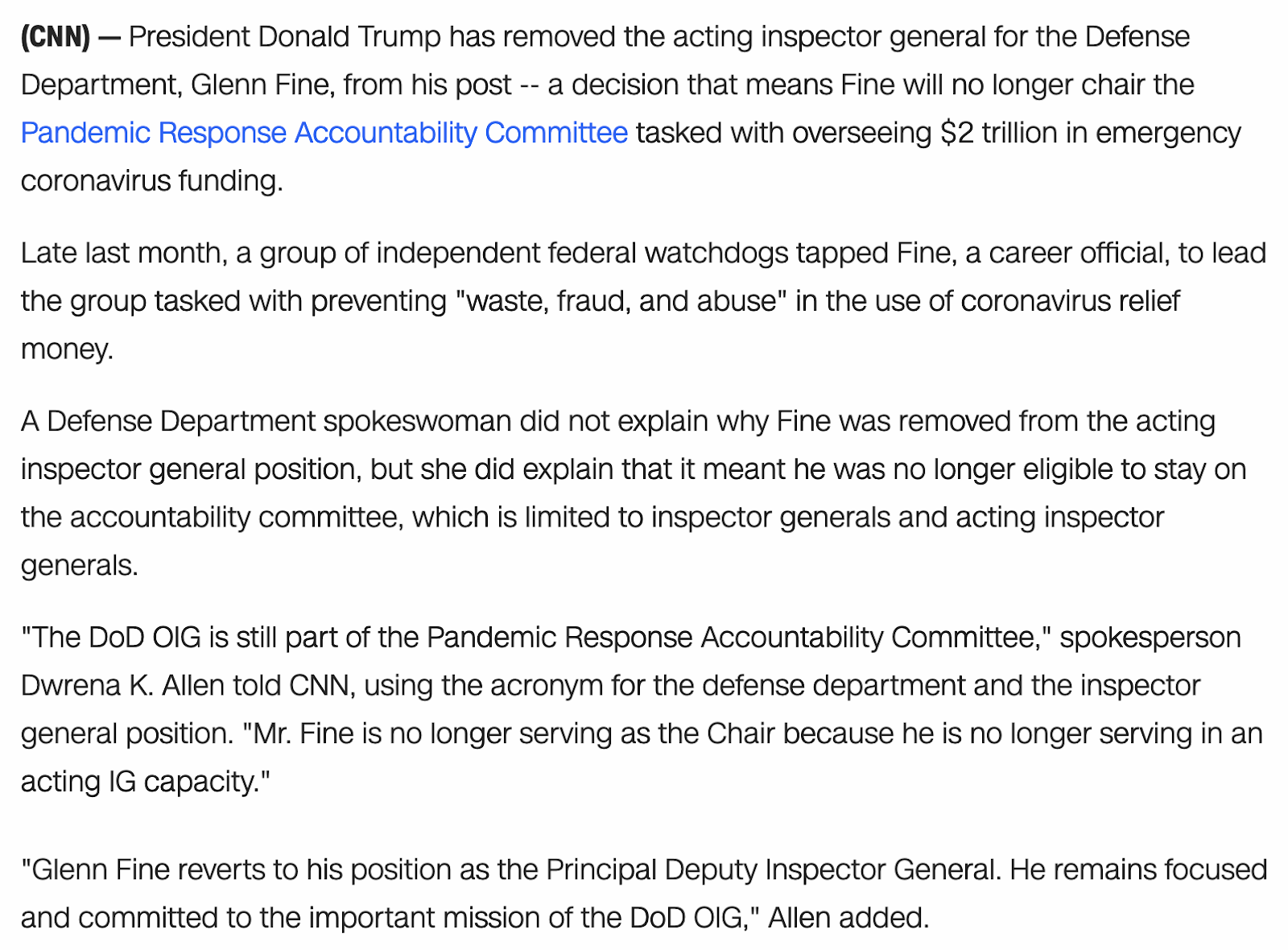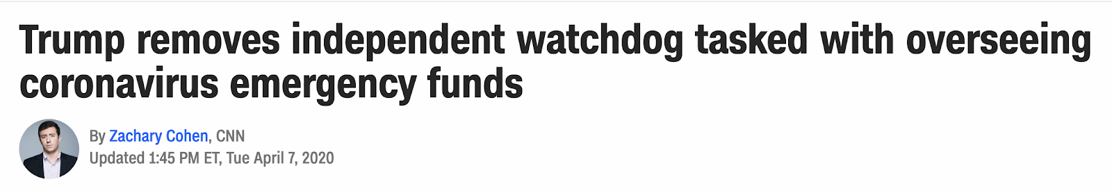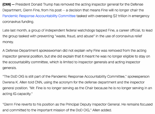 Trump removes independent watchdog overseeing trillions in coronavirus emergency funds, April 7, 2020