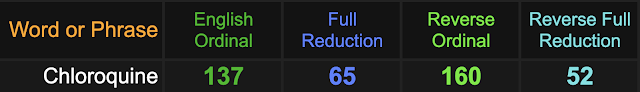 Chloroquine? This goes well with the number coded all over the ‘pandemic’, 65.