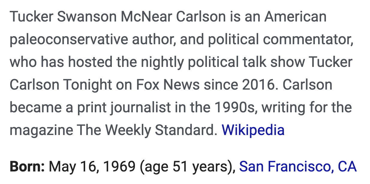 This news comes July 10, Tucker Carlson’s 56th day of his age.