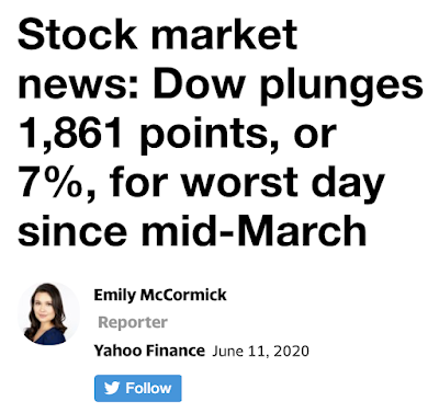 U.S. Stock Market | Dow falls 1861 points, one day after NASCAR bans Confederate Flag & while Civil War statues are toppled nationwide & while Trump plans Juneteenth rally in Tulsa, Okalahoma
