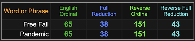 Notice free fall and pandemic are identical, 38, 43, 65 and 151.