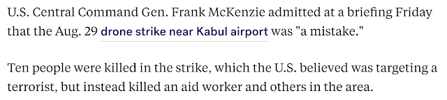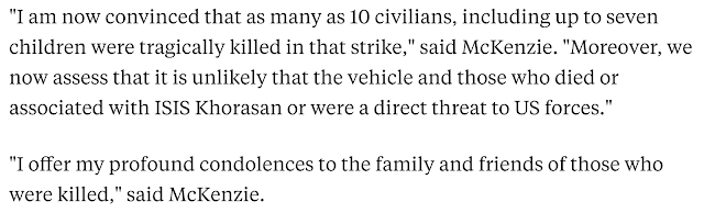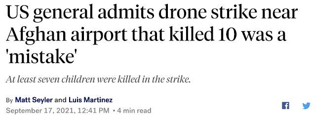 US military admits to accidentally killing 7 children and 3 adults, September 17, 2021 (19 days after ‘mistake’)