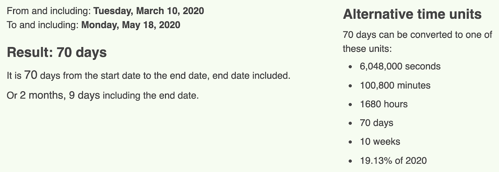 Notice, from the March 10 closure, to the May 18 reopening, is a span of 70-days. As we know, there have been a number of coronavirus rituals surrounding this number.