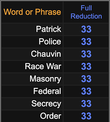 For another parallel, Trayon Martin was buried March 3, or 3/3, the anniversary of the Rodney King beatings, and the George Floyd rioting started on East 33rd Street. Notice how the name of the victim here, ‘Patrick’, sums to 33.