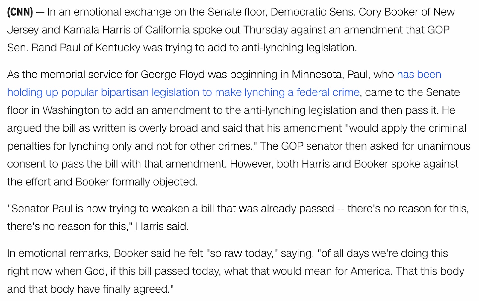 Why Rand Paul held up an anti-lynching bill on June 4, 2020, during the time of George Floyd