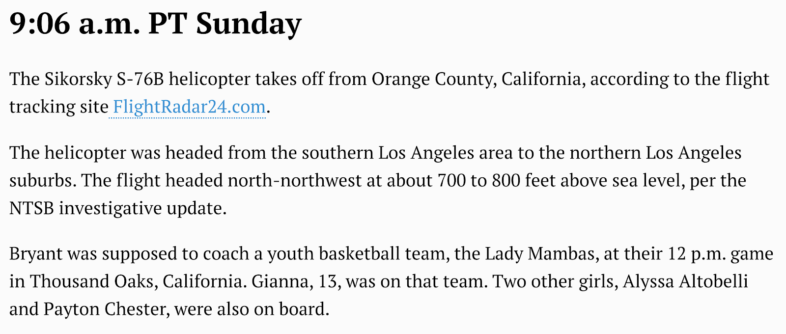 Remember, the helicopter took off at 9:06, and crashed at 9:47.