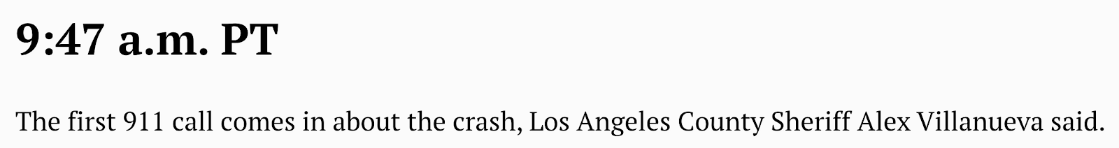 *Kobe’s chopper took off at 9:06 and crashed at 9:47, 41-minutes later.