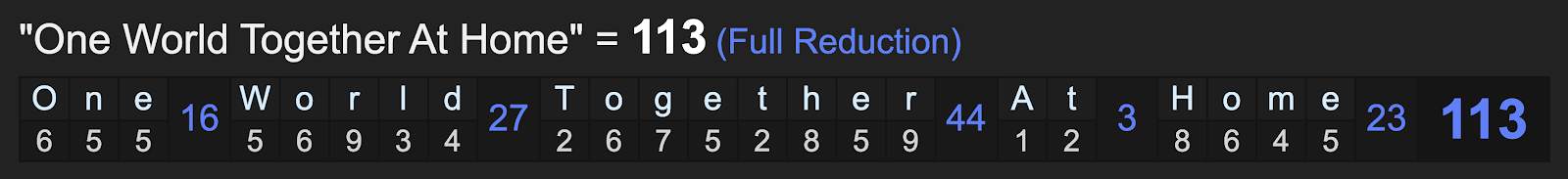 As you examine the 113 gematria, recall the World Health Organization declared a coronavirus pandemic on March 11, 2020, or 11/3.