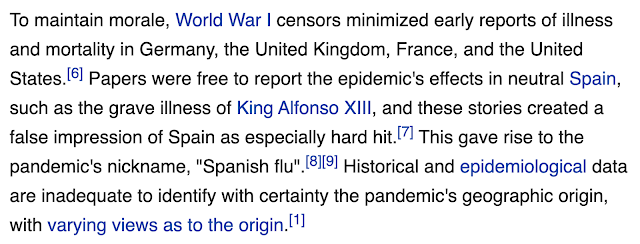 The virus came out of the first World War, go figure. I doubt it could have been some sort of sick twisted population control plot by the eugenicists who control this world.