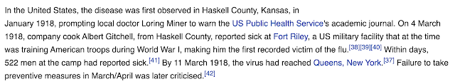 As we have been discussing, the numbers 56, 68 and 121 are coded all over the coronavirus outbreak, and notice they are all present in the Kansas origins of the Spanish Flu, being found in Haskell County, and at Fort Riley.