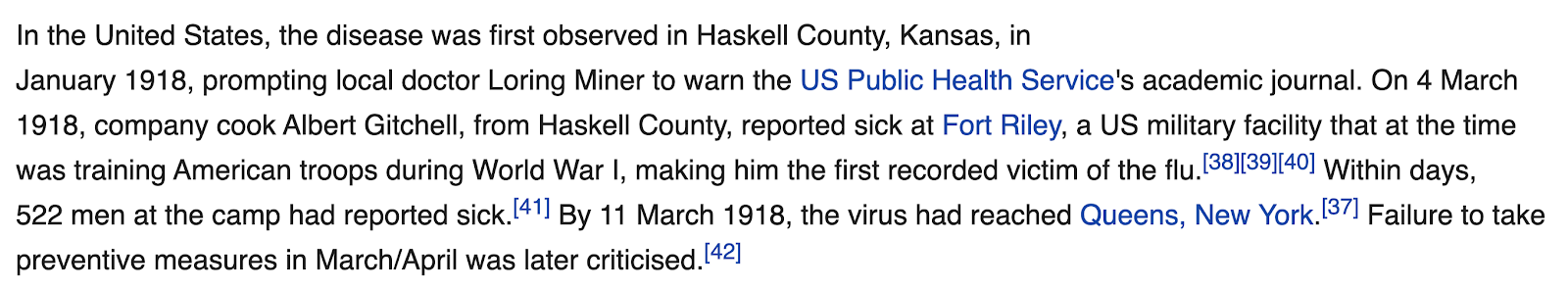 As we have been discussing, the numbers 56, 68 and 121 are coded all over the coronavirus outbreak, and notice they are all present in the Kansas origins of the Spanish Flu, being found in Haskell County, and at Fort Riley.