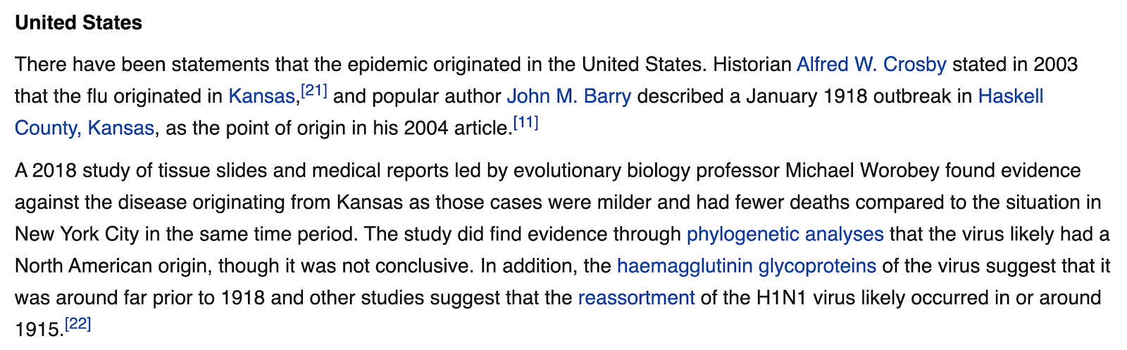 The virus came out of the first World War, go figure. I doubt it could have been some sort of sick twisted population control plot by the eugenicists who control this world.